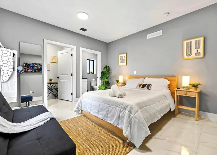 Comfy Studio W Beautiful Space! komt met een complete keuken, waar gasten hun maaltijden kunnen koken. Nitin Bakery is in de nabijheid van deze accommodatie en biedt gerechten uit Latijns-Amerikaanse keuken. Northwest 17th Avenue & Northwest 31st Street busstation is op circa 900 meter afstand van het 42 m² grote appartement.